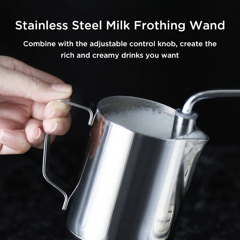 6.ステンレス製のスチームワンドを使用すると、風味を高めるマイクロフォームミルクを手でテクスチャーすることができ、ラテアートの作成が可能になります。
