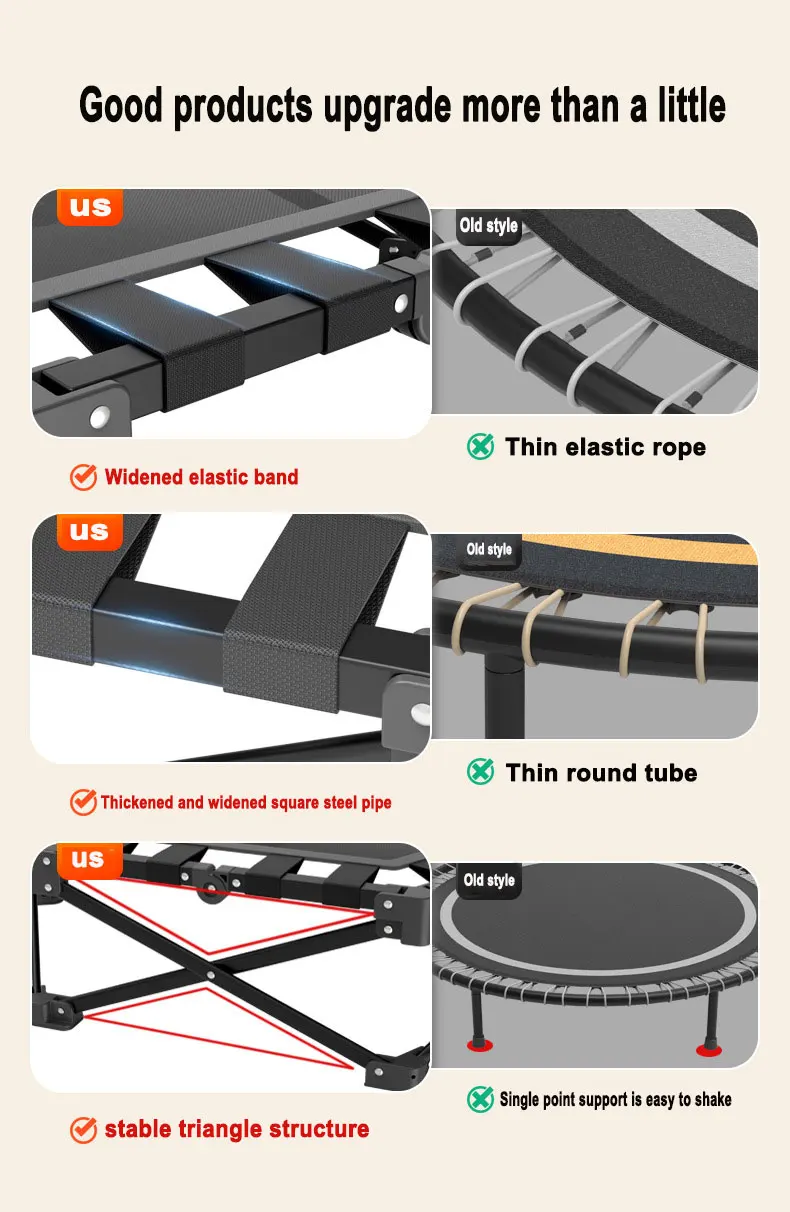 トランポリン屋内ジャンプベッド、手すり付き小型バウンストランポリンフィットネストランポリン、トランポリンの利点
