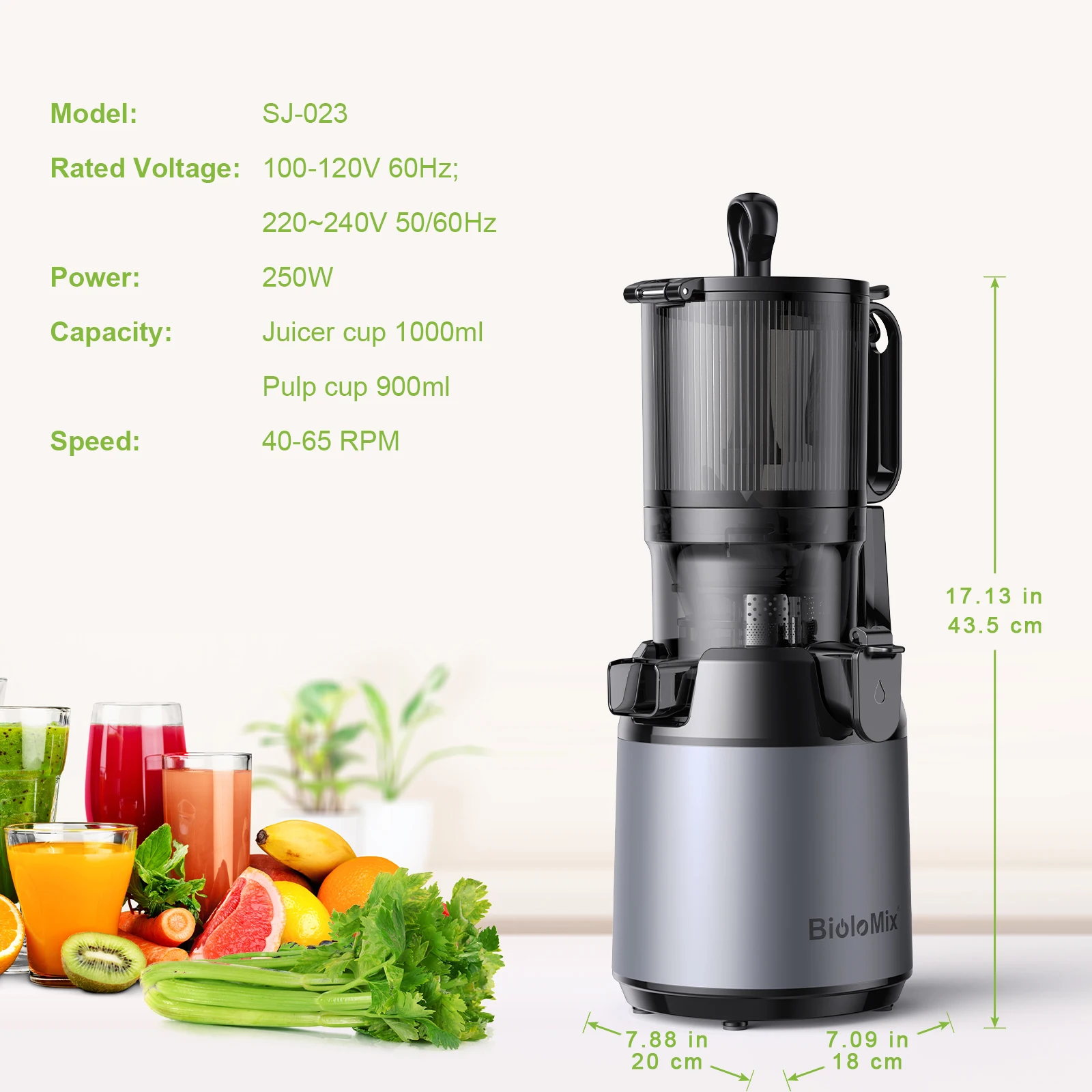 Biolomix-コールドプレスジューサー、低速ジューサー、果物と野菜の全体に適合、高ジュースの歩留まり、Bpaフリー、130フィードシュート